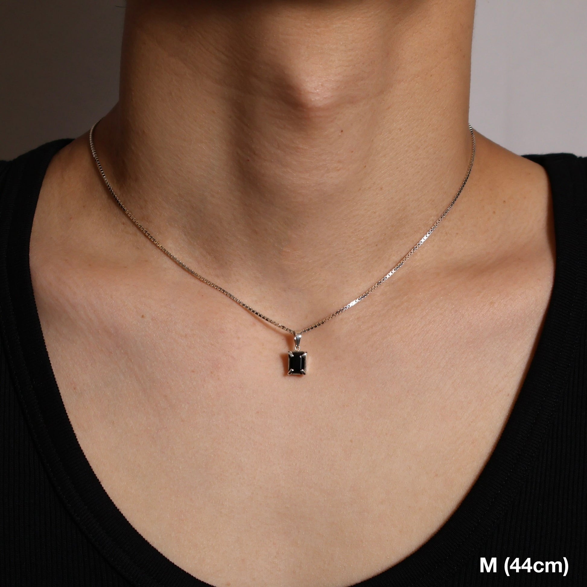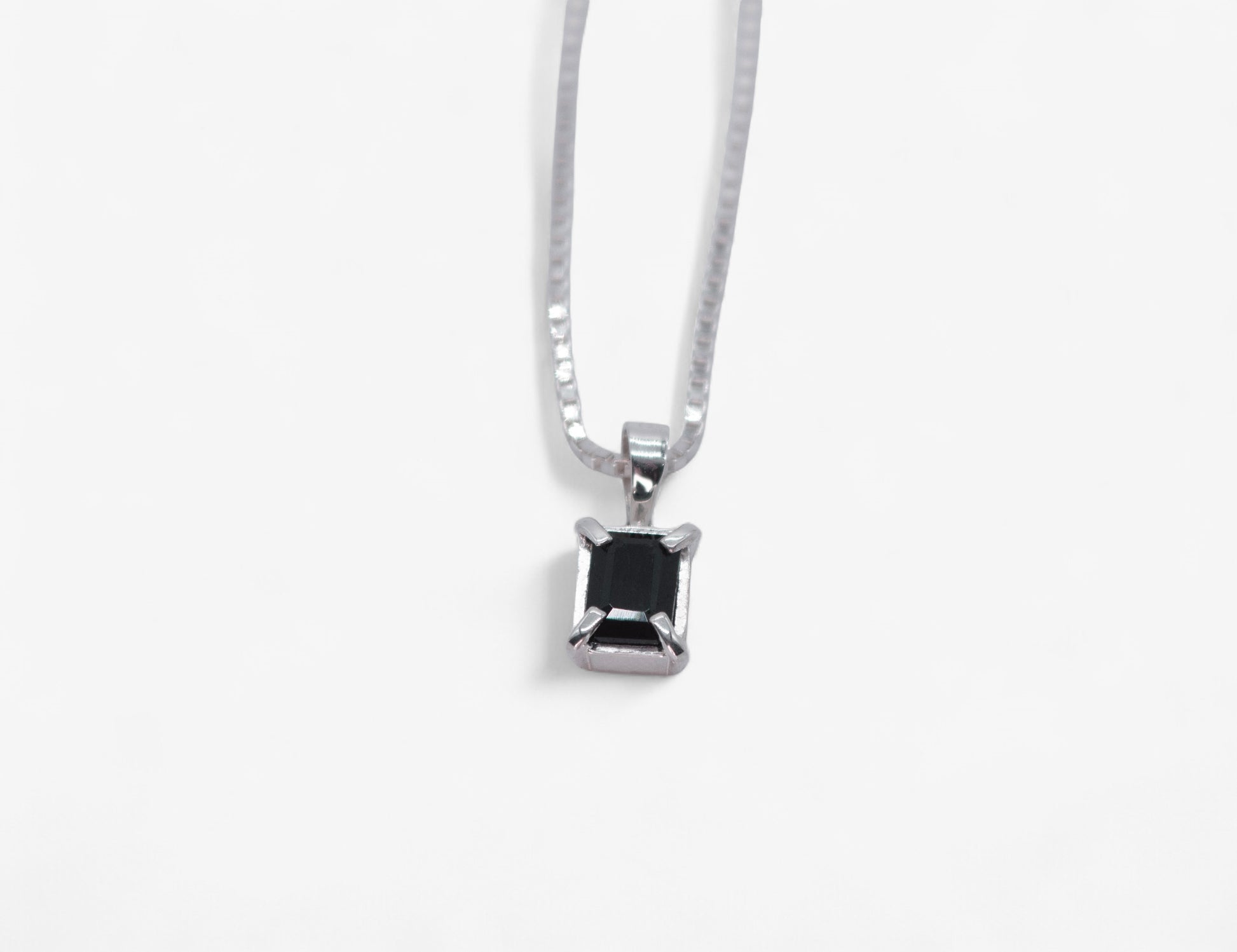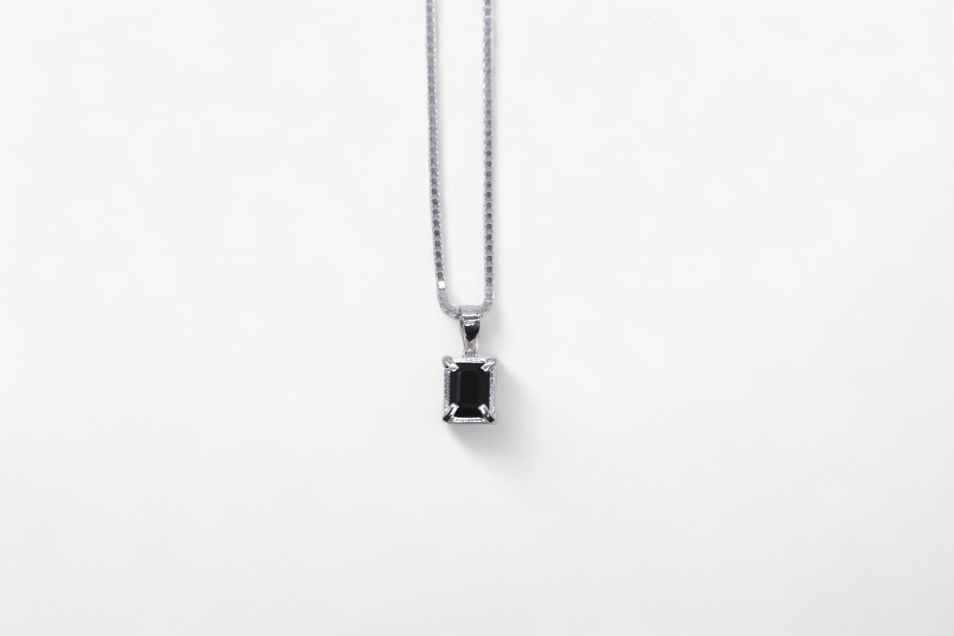 A necklace featuring a single sophisticated octagon-cut onyx .