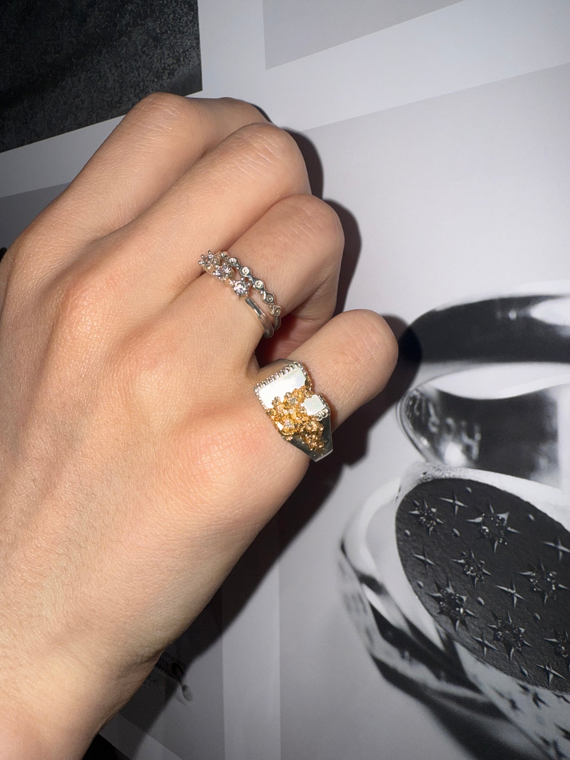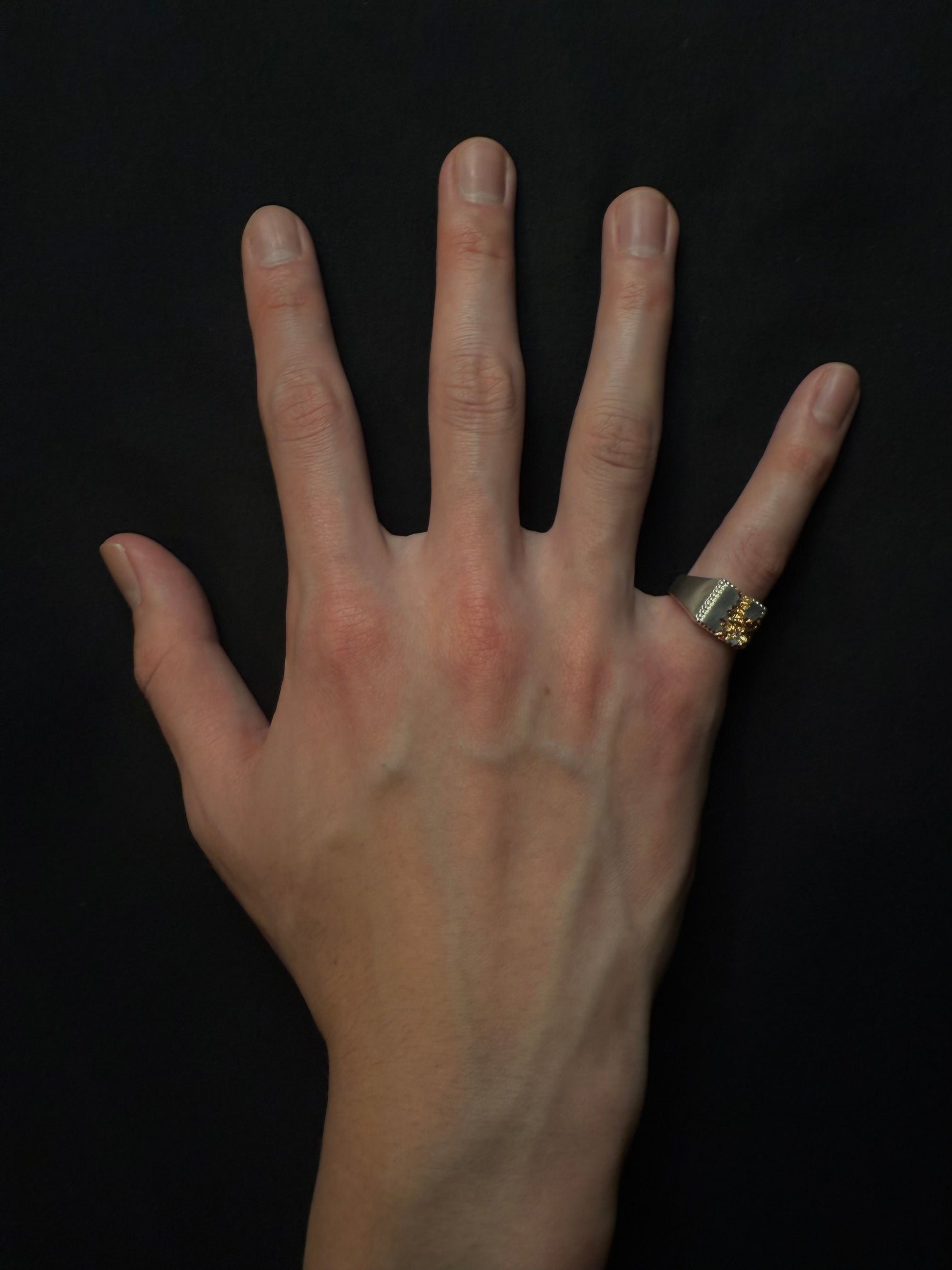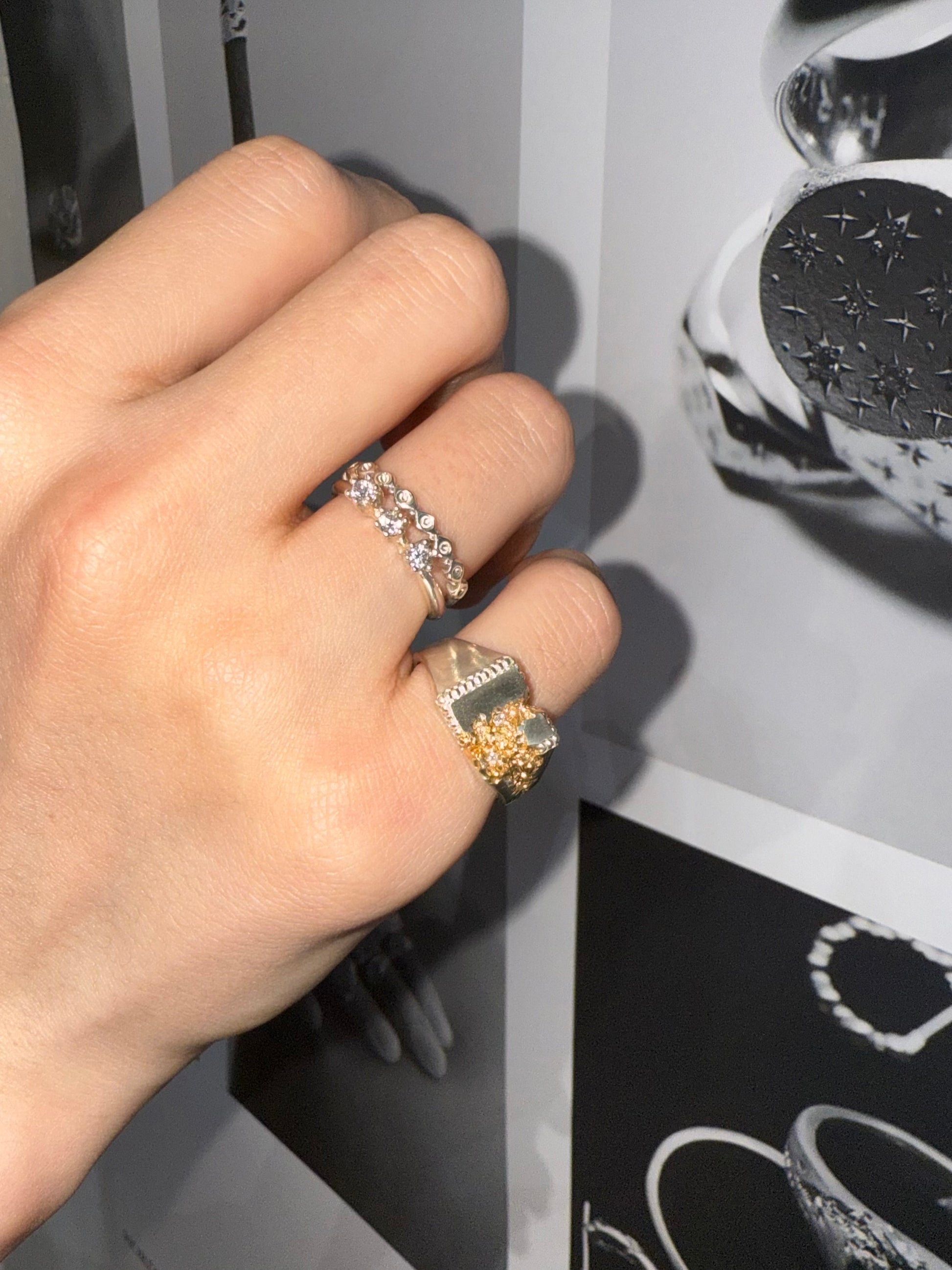 GOLD (K18GP) は、SILVER925にK18ゴールドコーティングを施したものです。使用状況や経年により、コーティングが徐々に摩耗し、色が薄くなることがございます。コーティングが薄れた場合でも、銀本来の風合いを楽しんでいただけますが、コーティングの再施行を希望される場合は、ご相談ください。