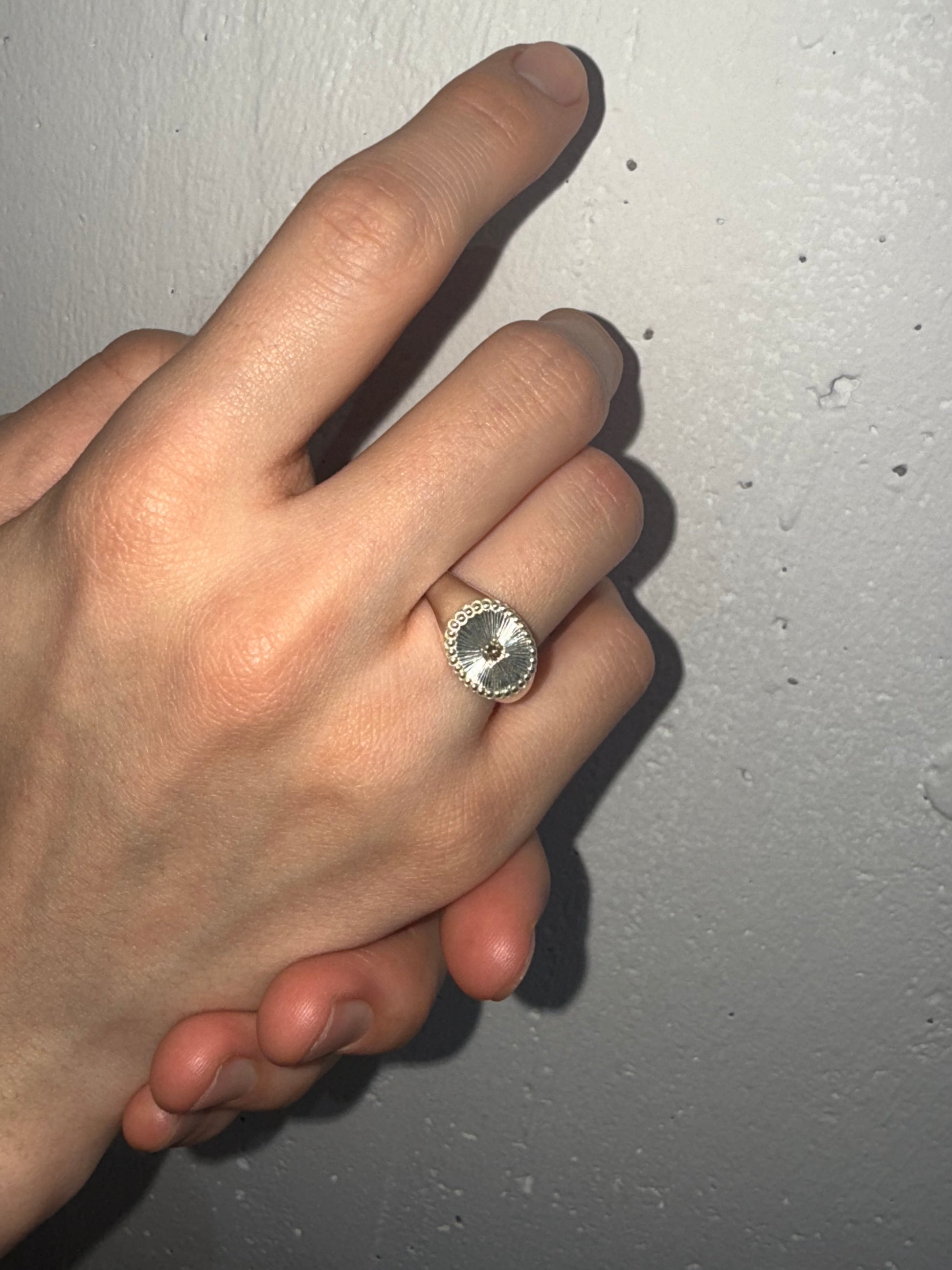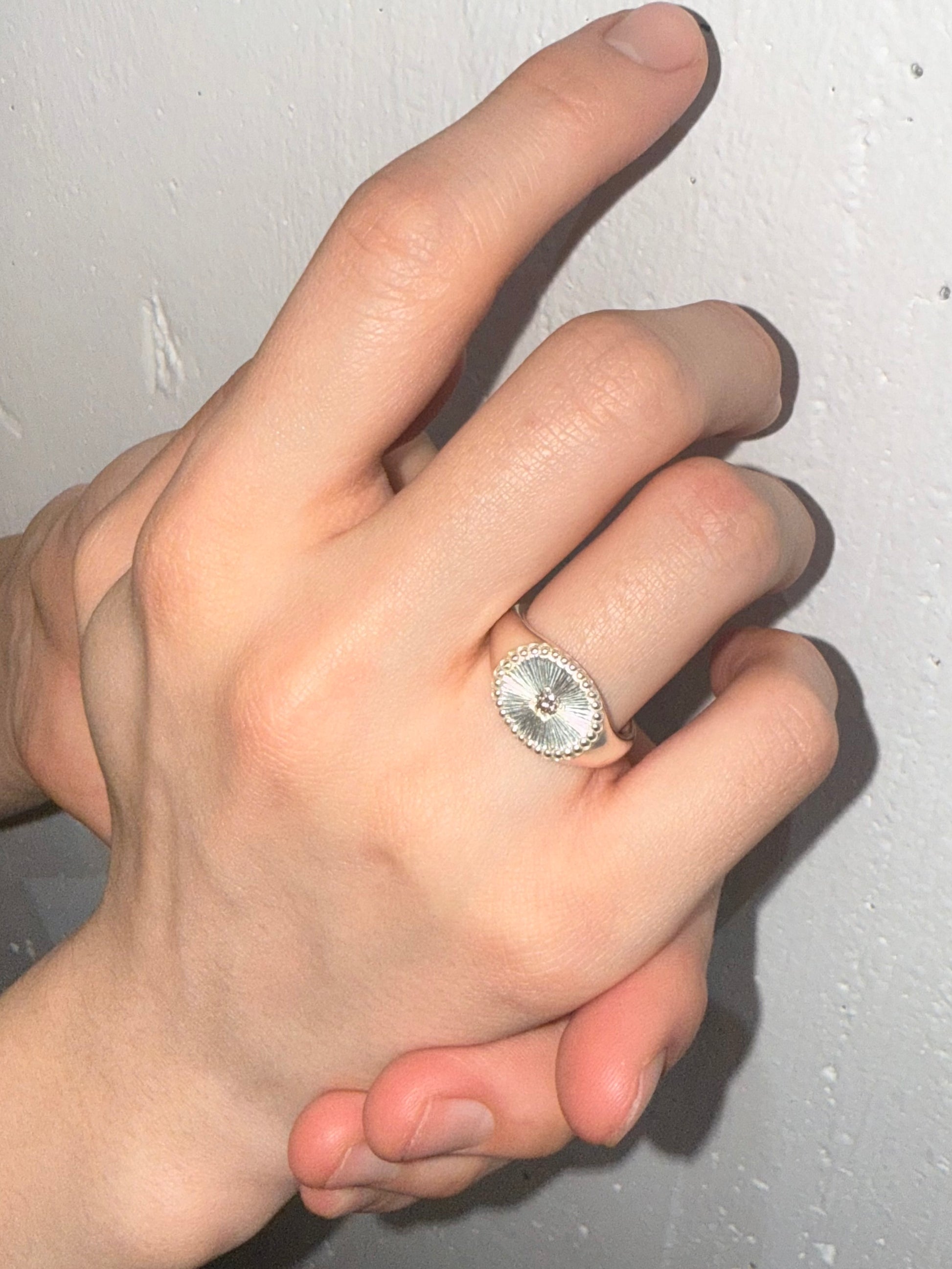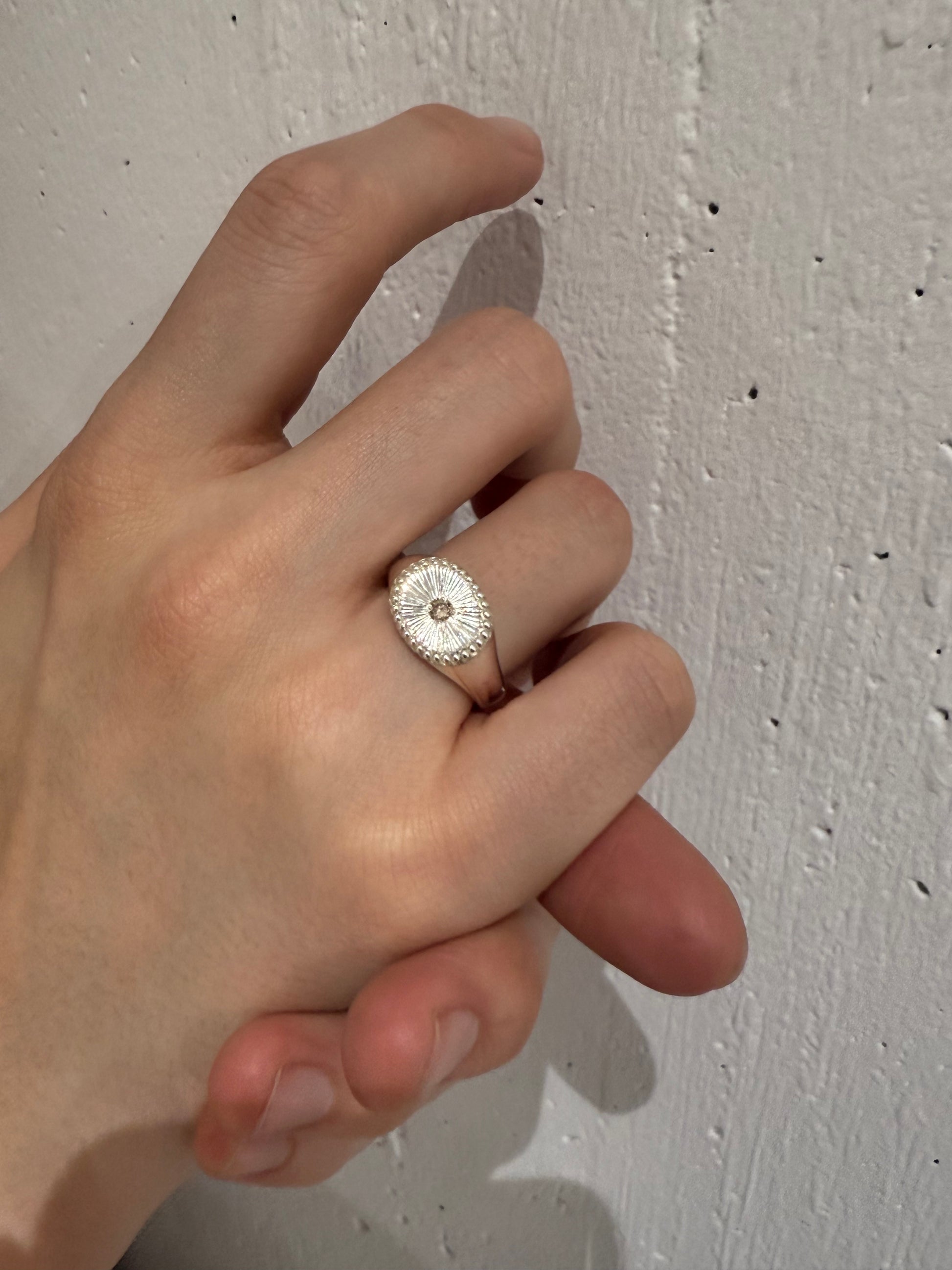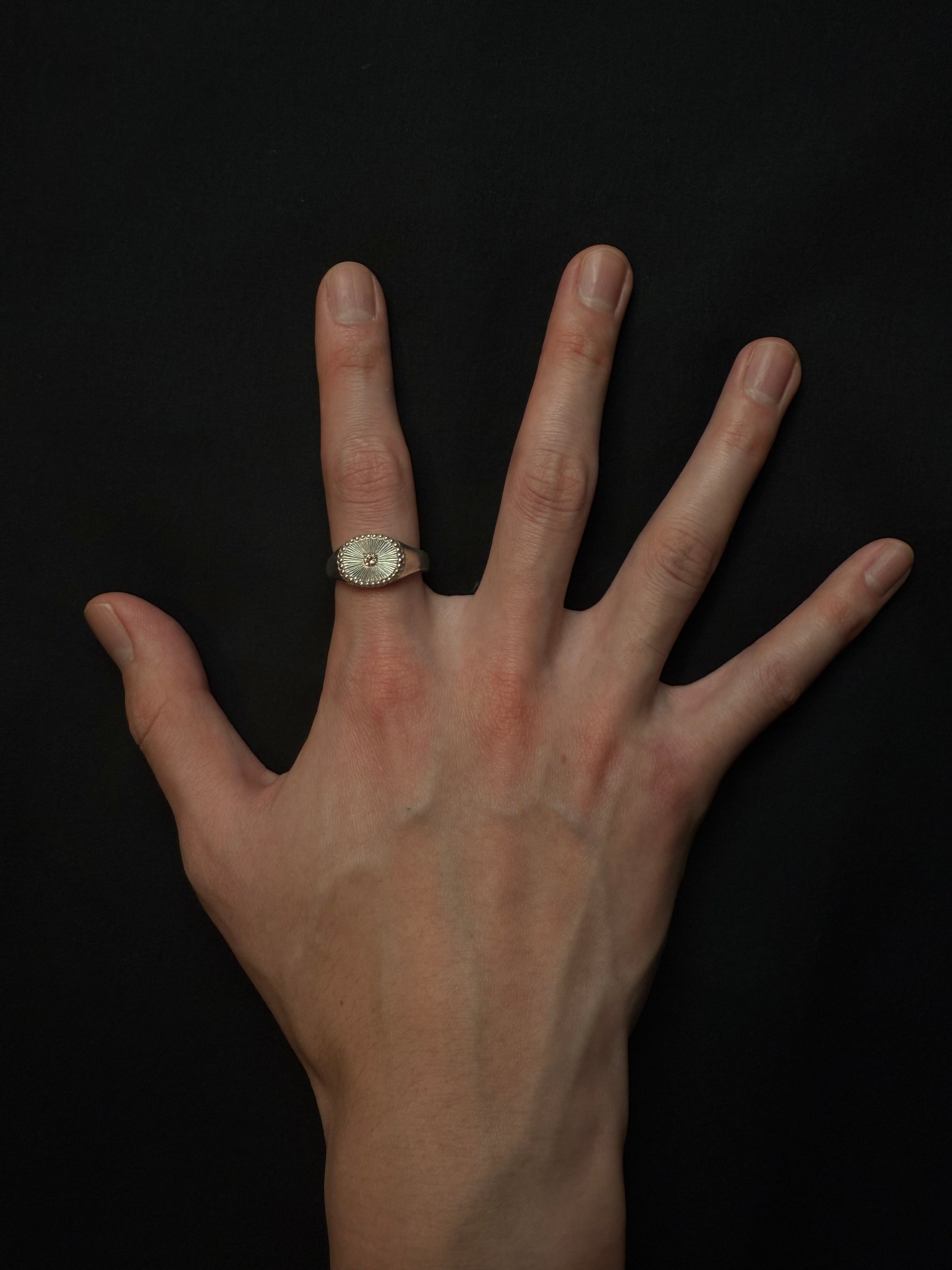手彫りが生む滑らかな艶が、光をやわらかく反射し、指先に繊細で上品な輝きを添えます。