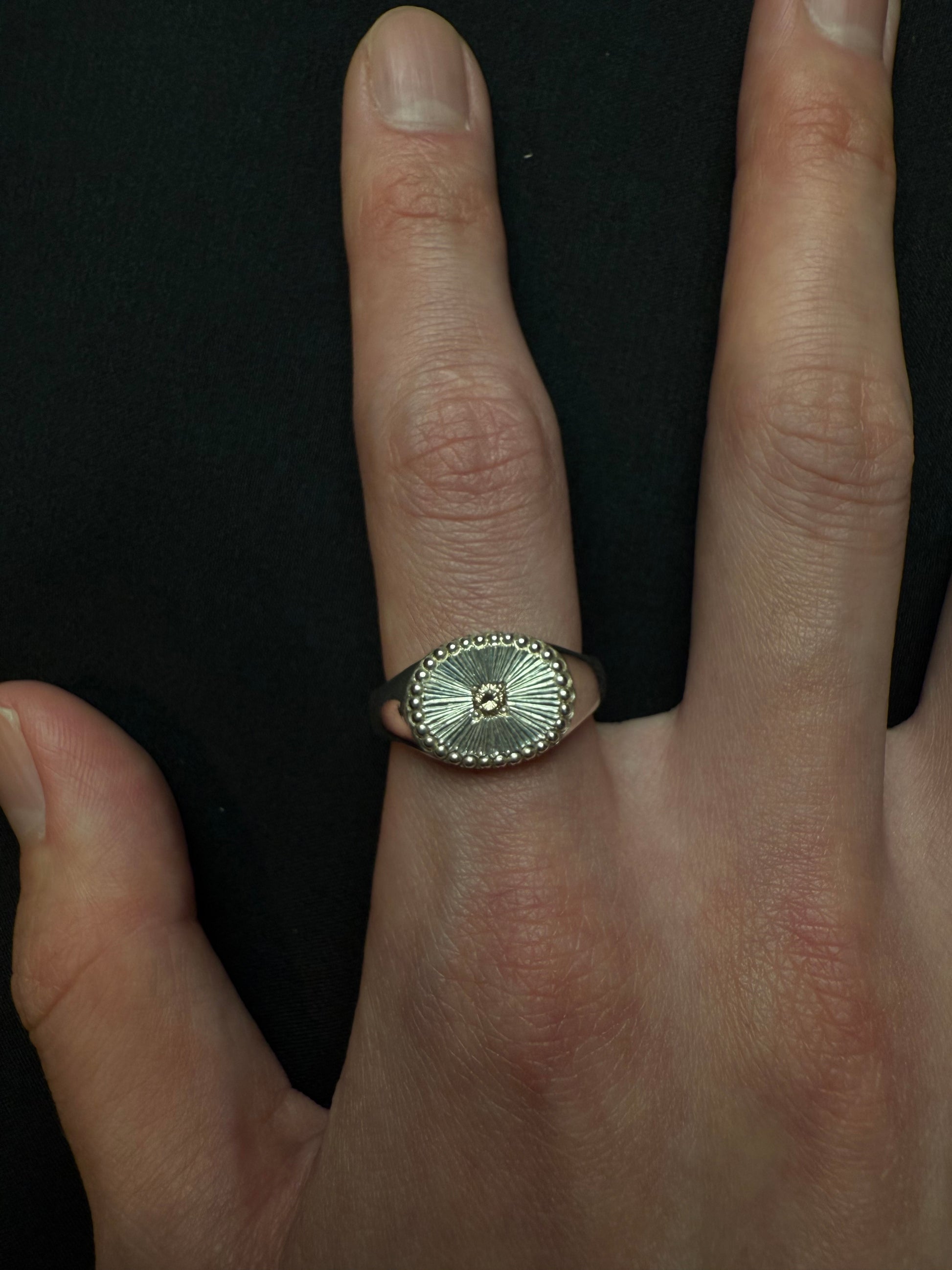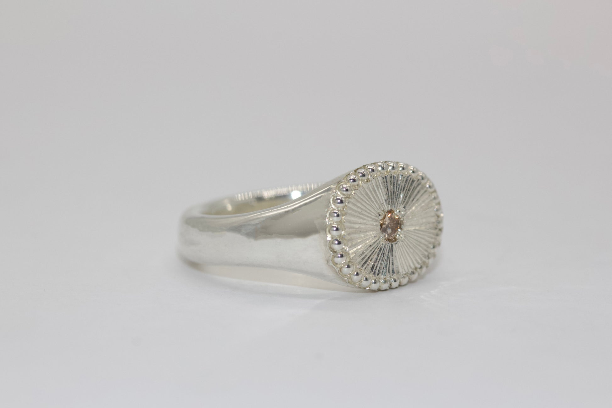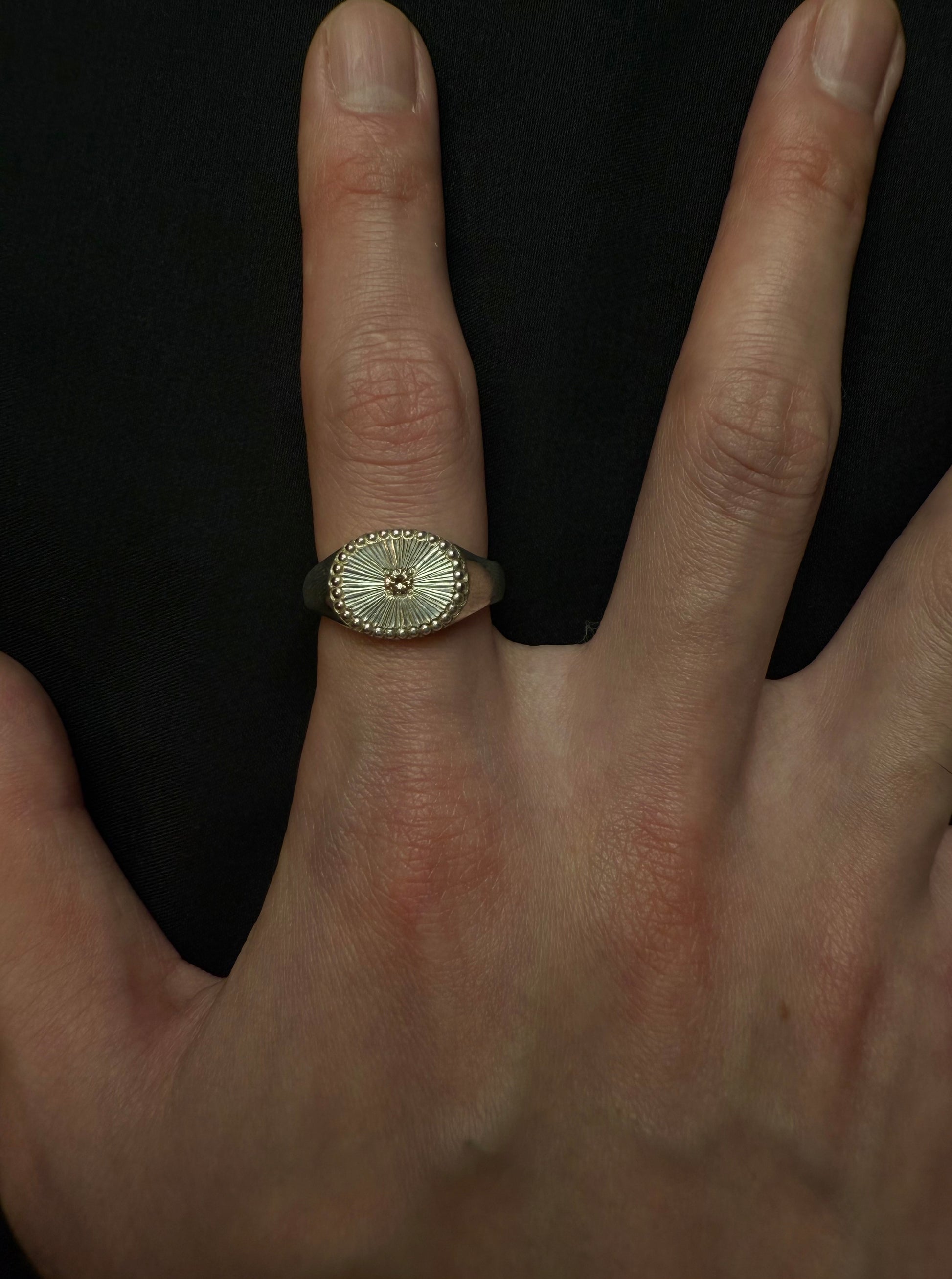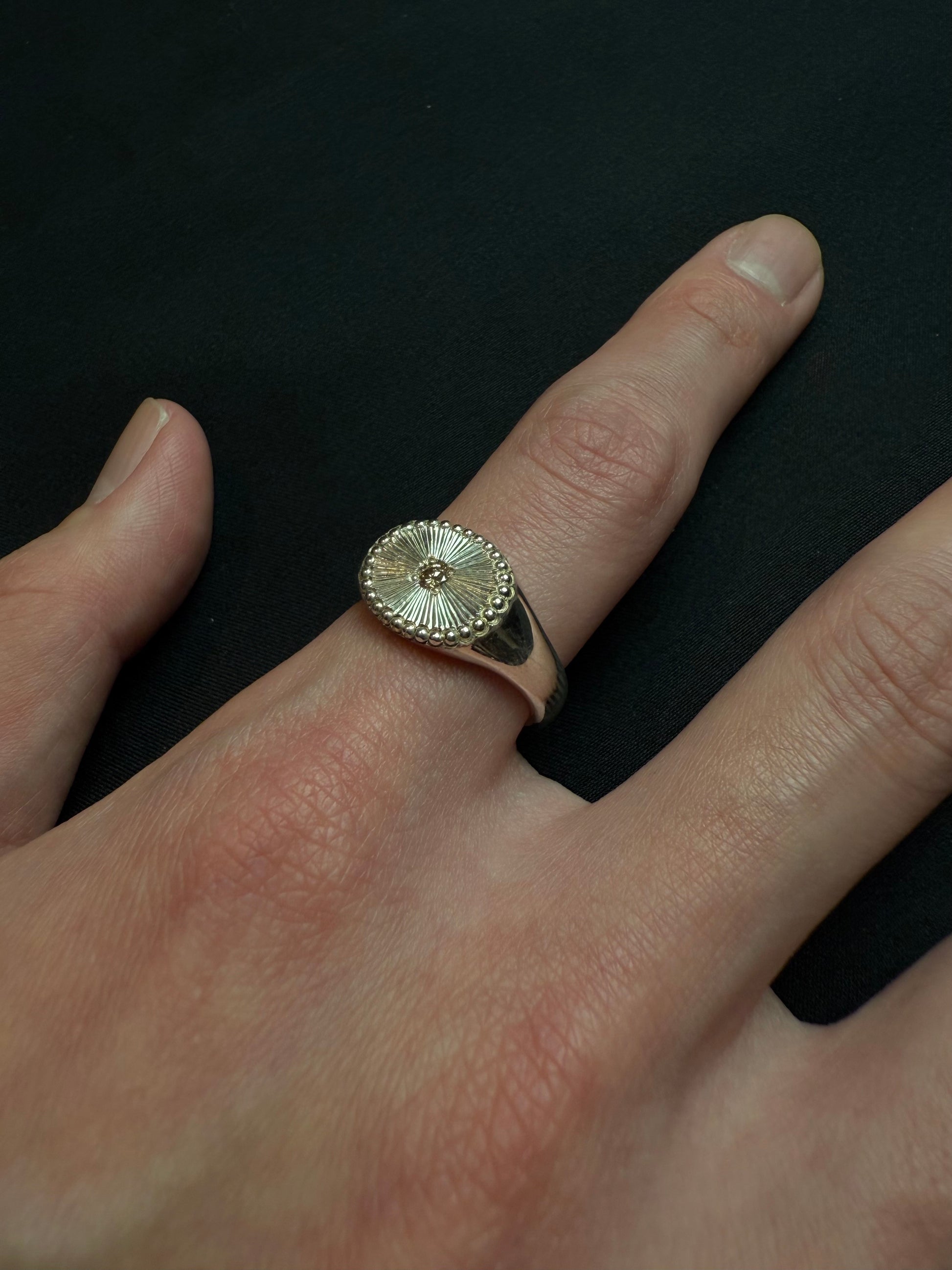 手彫りが生む滑らかな艶が、光をやわらかく反射し、指先に繊細で上品な輝きを添えます。