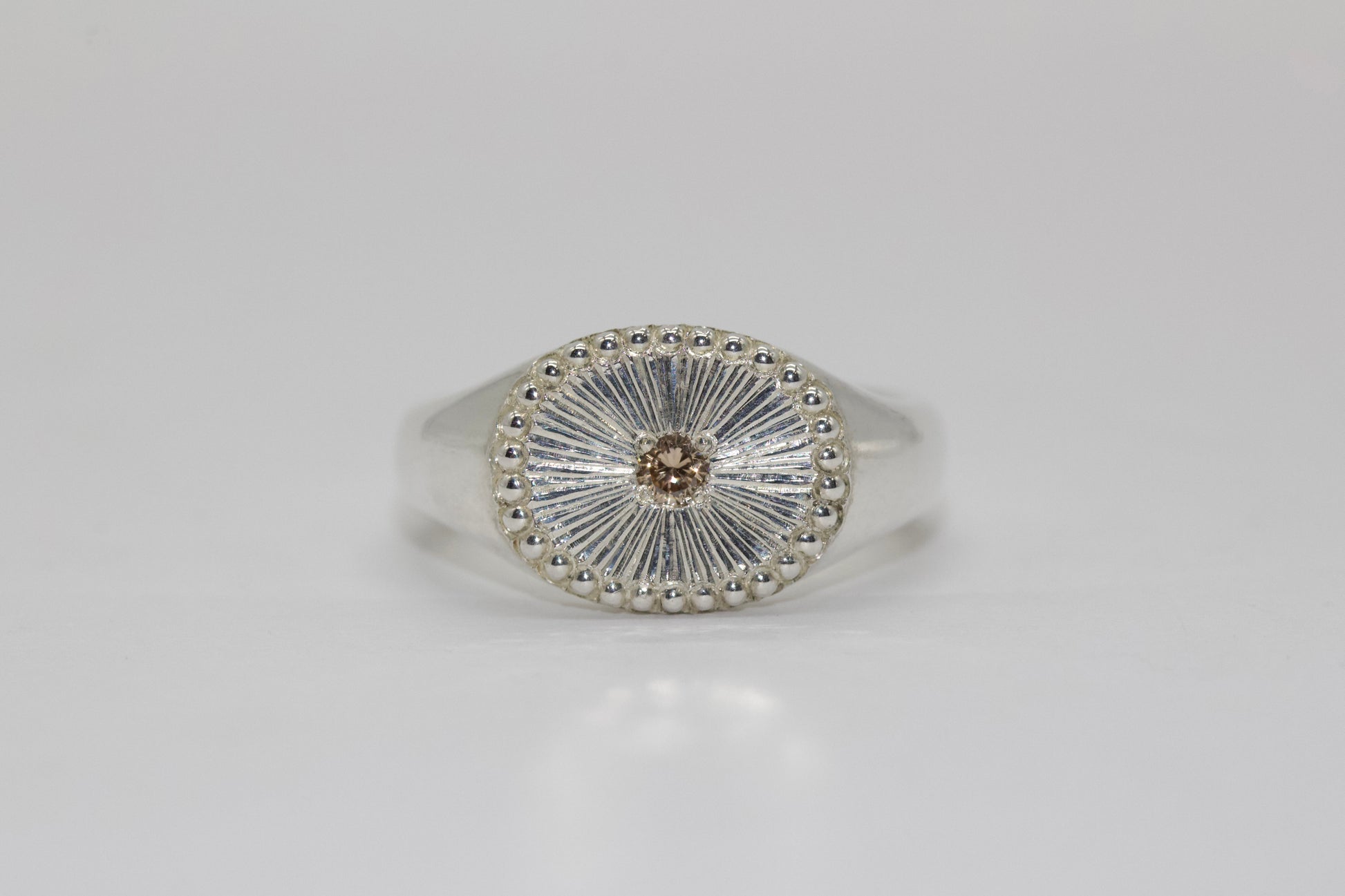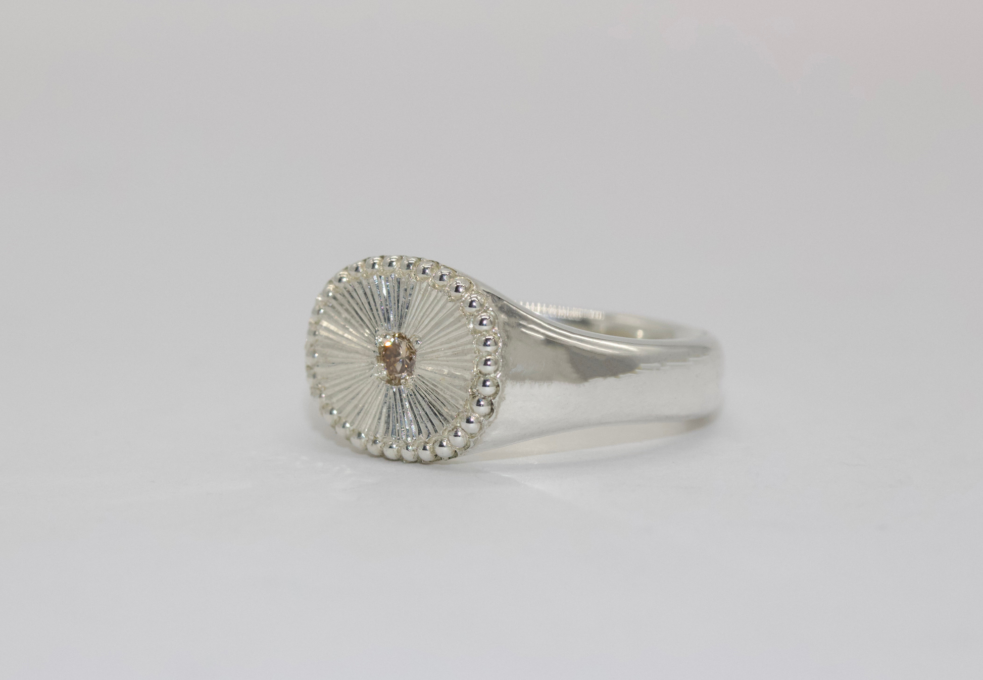 中央には天然のブラウンダイヤモンドが静かに光を放ち、落ち着いた華やかさを演出します。