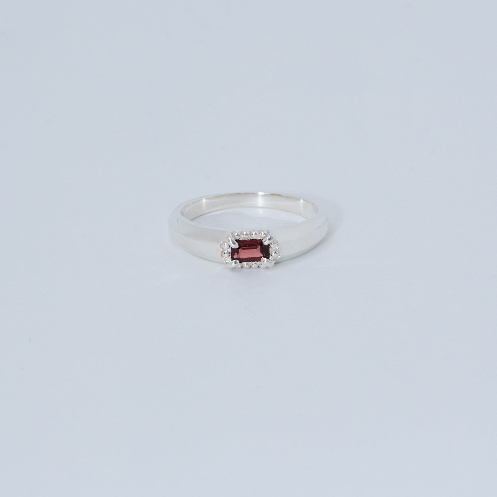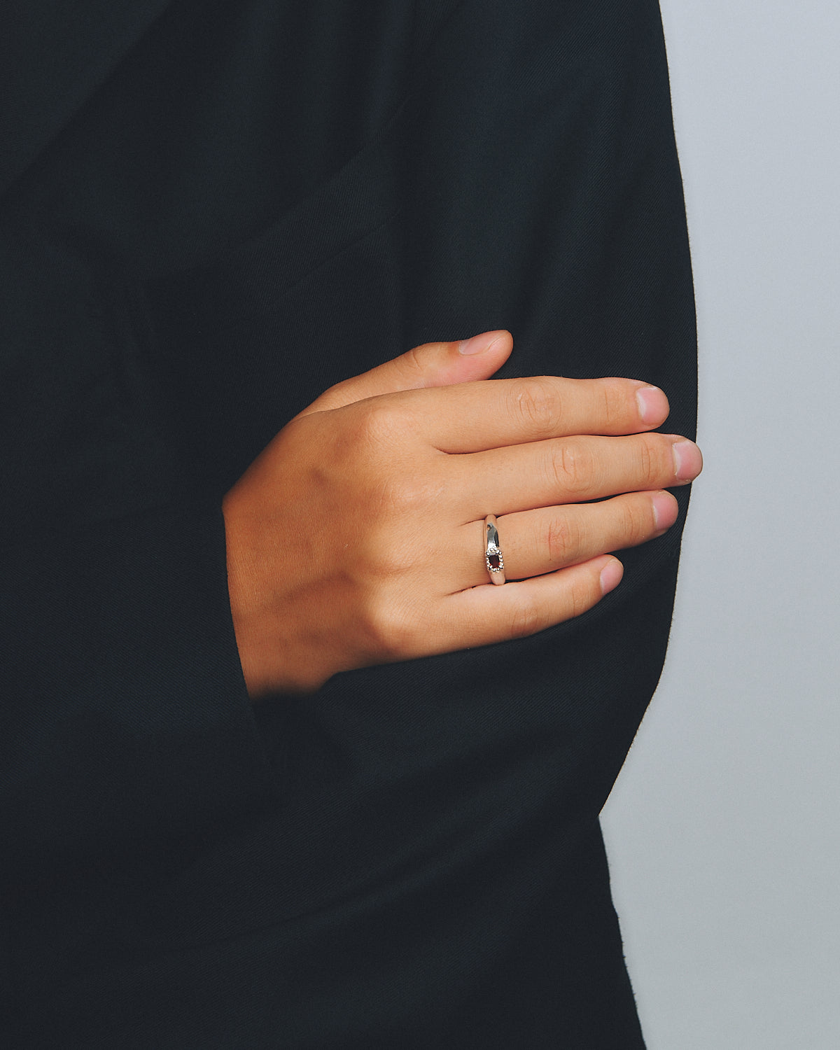 深紅色的石榴石自古以來就被視為能夠增強活力、愛情和信仰的寶石。這款戒指設計簡約而不失精緻,適合各種場合,從日常佩戴到特殊場合都相得益彰。